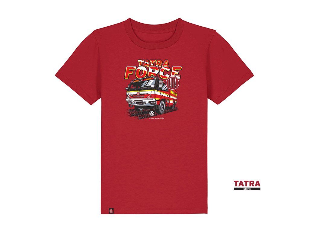 The red kids’ Firefighter T-shirt from TATRA is a great choice for young fans of firefighters and rescue vehicles. The bold print with a fire truck design gives the T-shirt an attractive and dynamic look.