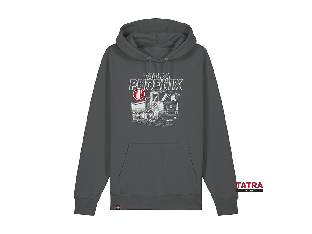 The Hoodie Tatra PHOENIX sweatshirt in grey features a detailed print inspired by the iconic Tatra Phoenix model. Its modern design combined with a comfortable fit makes it an ideal choice for leisure time and daily wear.