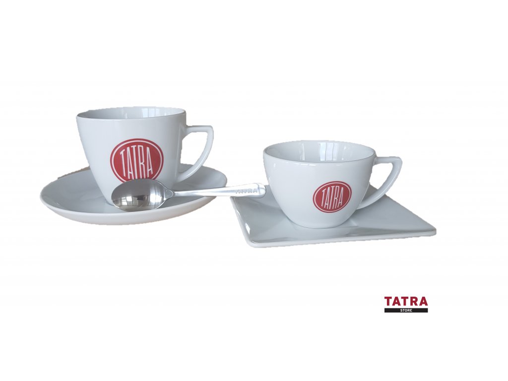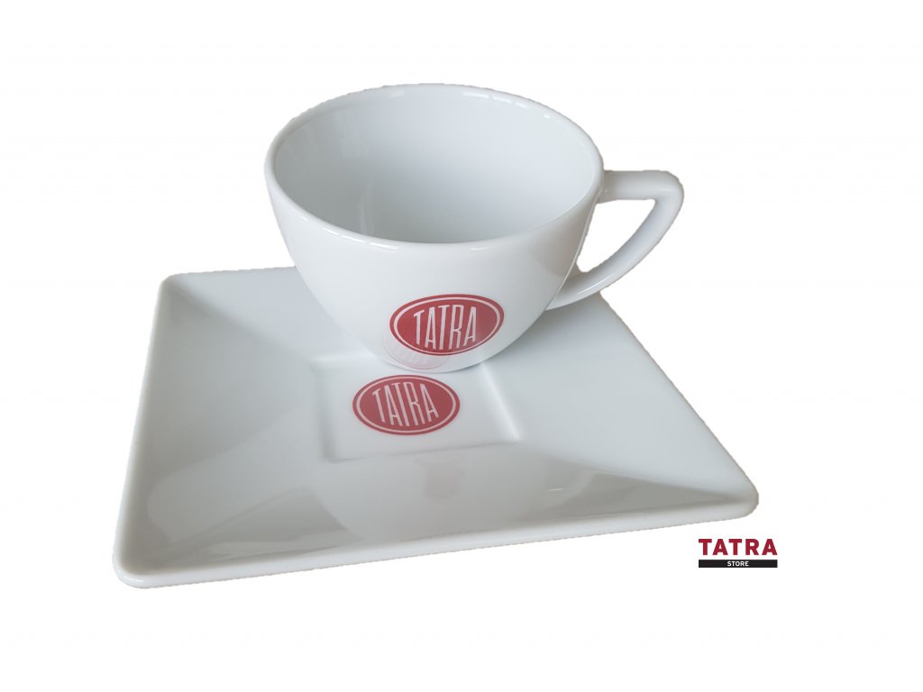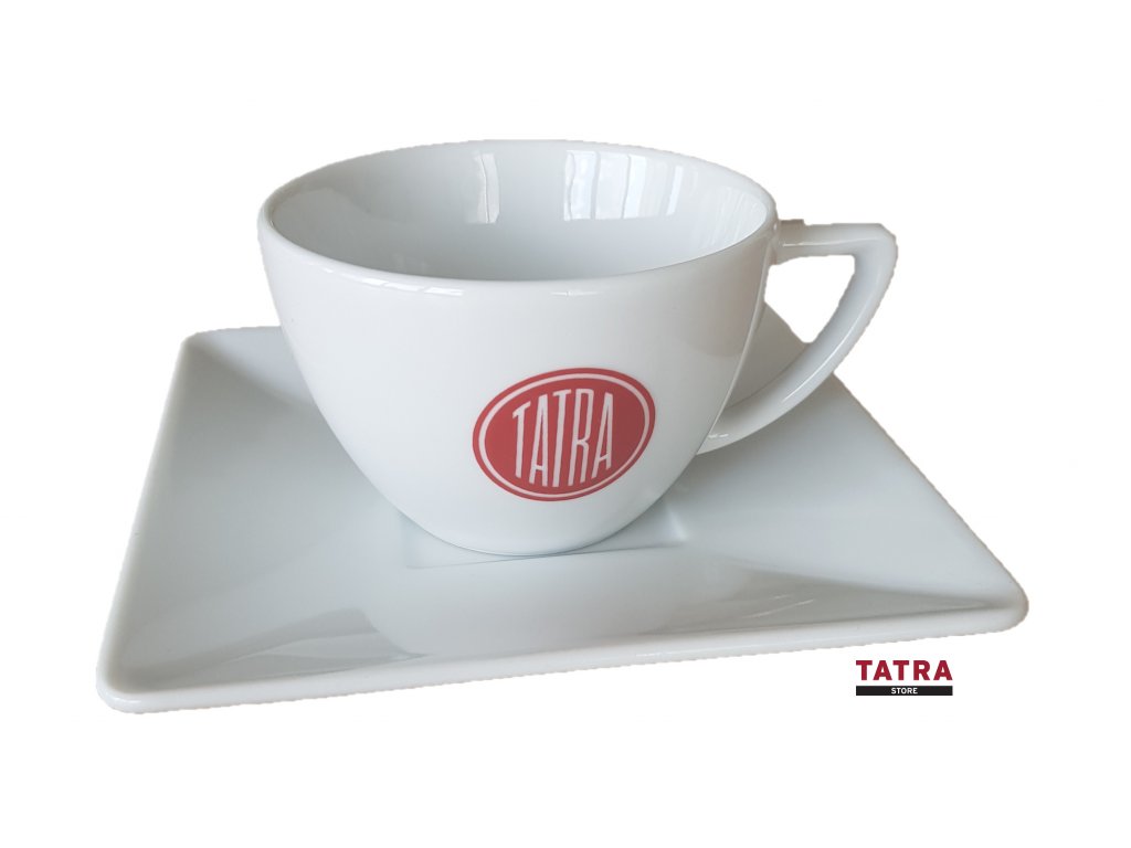 Modern style cup and saucer with a round TATRA logo not only on the cup.