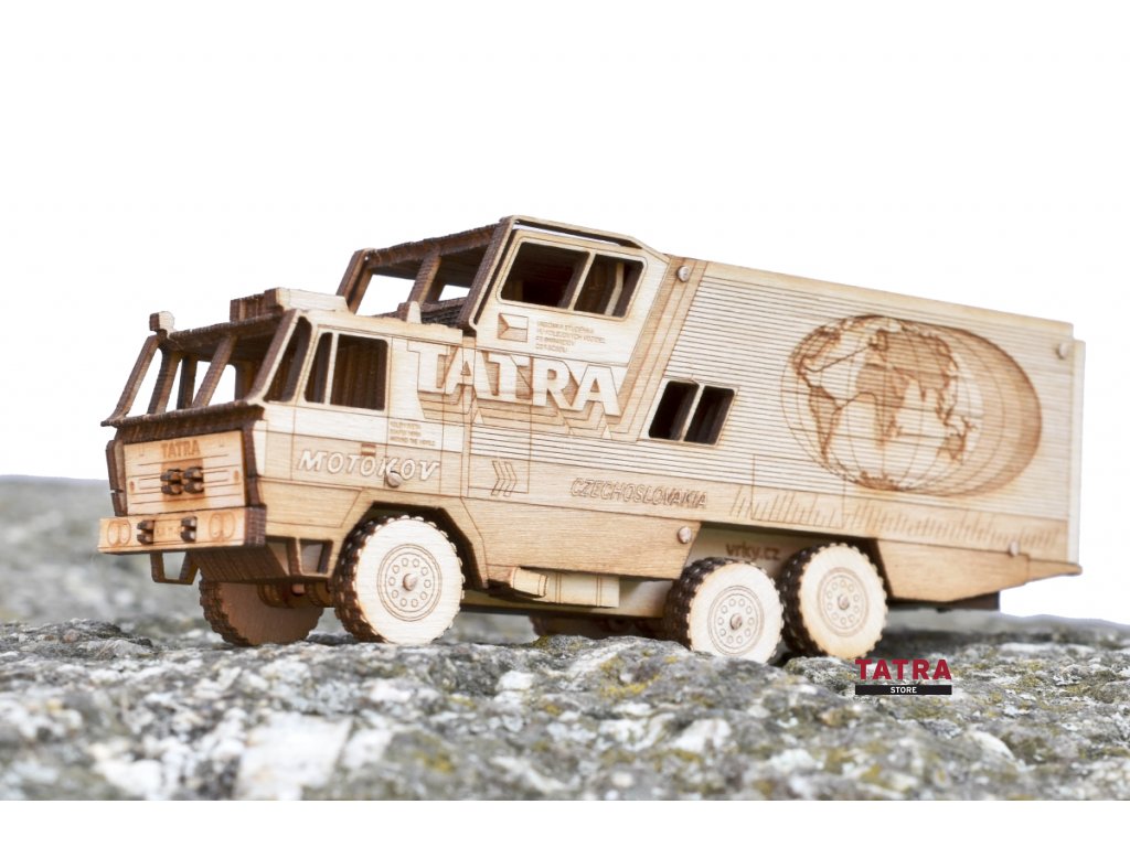 Expeditionary Tatra special, which toured the whole world in the years 1987-1990. You can have a reminder of this famous Tatra from the famous expedition at home, for example next to the desert special of the Tatra 815 2TO45 by Tomáš Tomeček. A simple kit, assembled without gluing, quickly and easily, contains 1 piece of the TATRA 815 GTC model. The scale of the model is 1:64, the length of the folded car model is about 15.7 cm.