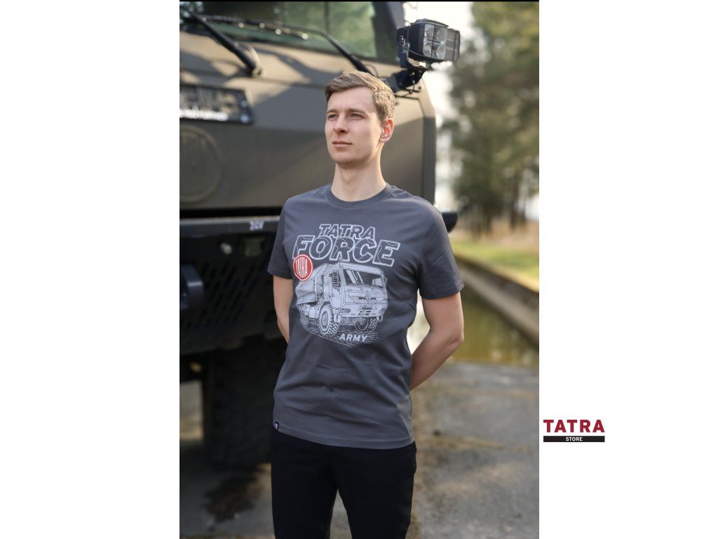 Toto šedé tričko TATRA 815-7 s motivem vojenského valníku je kombinací pohodlí a stylu. Vyrobené z kvalitního materiálu, je vhodné pro každodenní nošení i volnočasové aktivity. Design inspirovaný legendárními nákladními vozy TATRA zdůrazňuje vaši vášeň pro automobilovou historii a techniku.