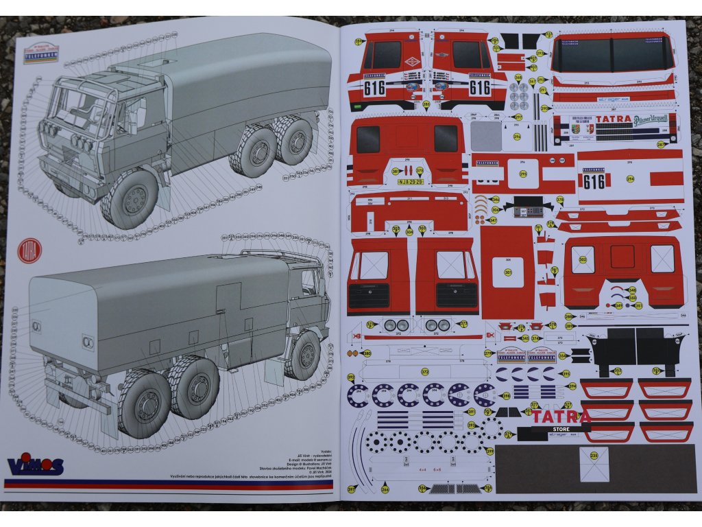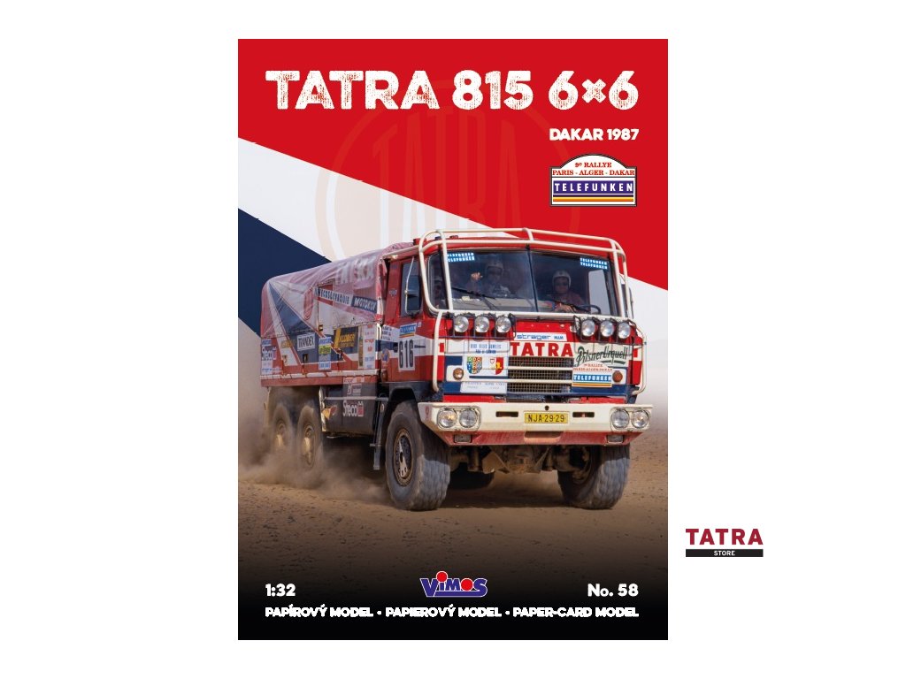 Model legendárního kamionu Tatra, s nímž se posádka Zdeněk Kahánek, Ota Měřínský a Vlastimil Buchtyar zúčastnila 9. ročníku Rallye Paříž - Dakar v roce 1987. Model obsahuje také tatrovácká "šlapadla", slavné vyprošťovací zařízení. Model lze sestavit ve dvou alternativních verzích, z nichž si modelář vybírá jednu: buď verzi ze soutěže, v plném zbarvení a se startovními čísly, nebo verzi "čistou", tedy bez čísel a reklam, která má rovněž svůj půvab. Součástí stavebnice je také stylový plakát o rozměrech 450 x 315 mm, který ztvárňuje obě verze modelu.